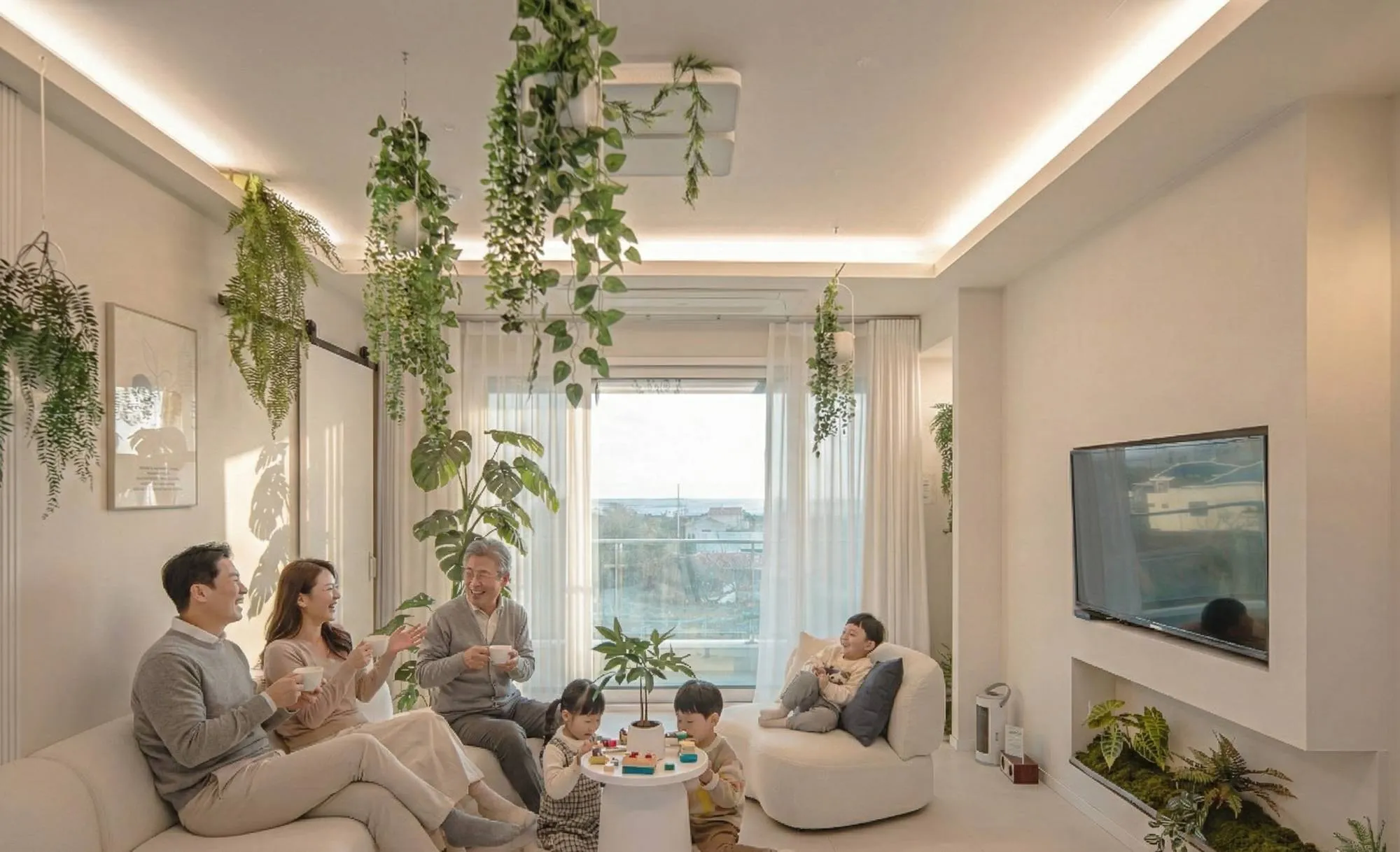 (온 가족이 넉넉한 대형 소파 + 스마트 TV)
