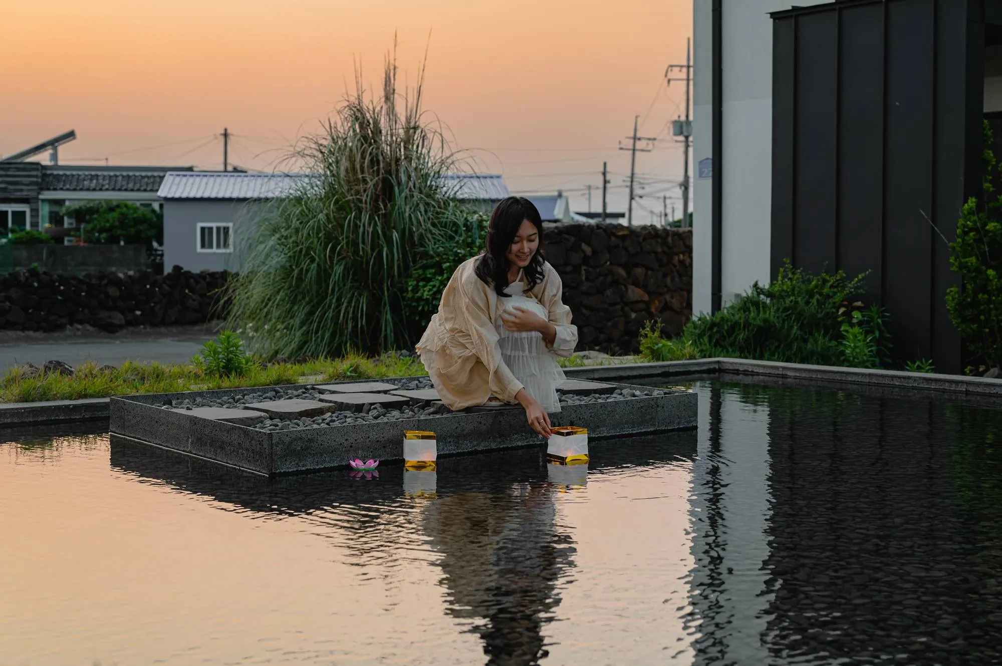 성인 6명이 편안하게 즐기는 대형 자쿠지와 수경정원의 소원초.